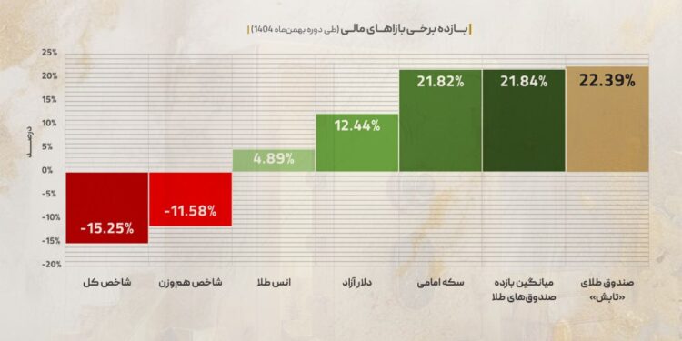 تومان نیوز:بررسی عملکرد بازارهای مالی در یکماهه منتهی به پایان بهمن ۱۴۰۴ نشان میدهد همزمان با افت قابل توجه شاخصهای سهامی و تغییر مسیر نقدینگی به سمت داراییهای امن، صندوق طلای تابان تمدن با نماد «تابش» توانست با ثبت بازدهی ۲۲.۳۹ درصدی، عملکردی فراتر از میانگین صندوقهای طلا، سکه امامی و دلار آزاد به ثبت برساند.