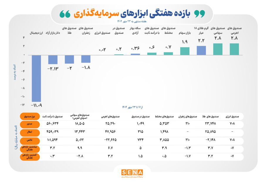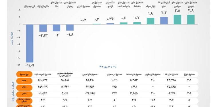 بر اساس این داده‌ها، صندوق‌های سرمایه‌گذاری سهامی و اهرمی با کسب بازده موزون مثبت ۲.۸ درصد در صدر جدول بازده ابزارهای سرمایه‌گذاری قرار گرفتند. این عملکرد نشان‌دهنده بازگشت نسبی اعتماد سرمایه‌گذاران به بازار سهام پس از نوسانات اخیر است.