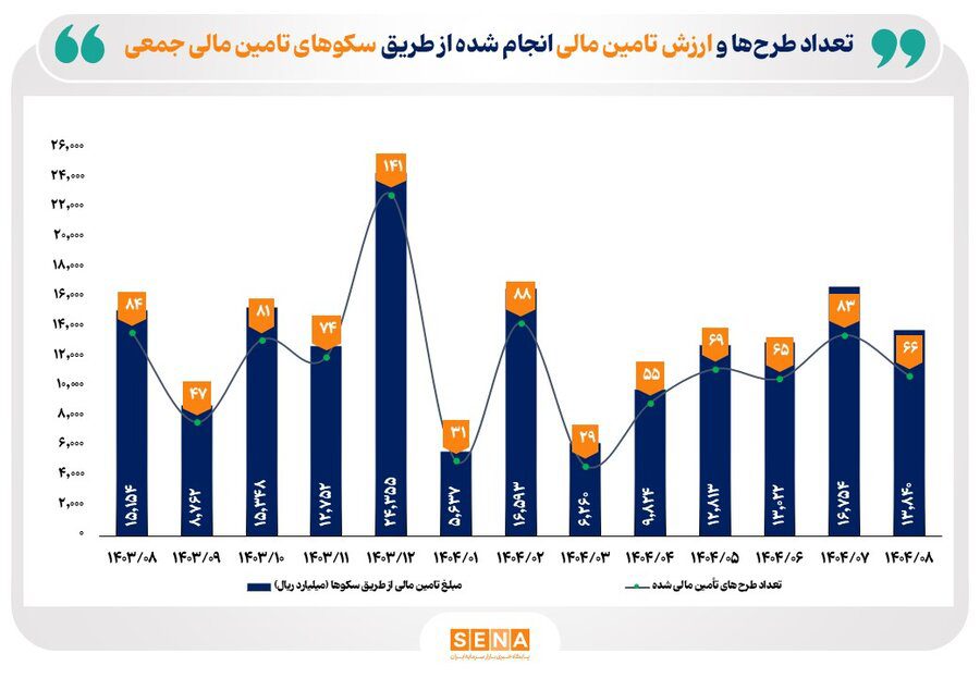 آمارها نشان میدهد بیشترین تامین مالی انجام شده در اسفند ۱۴۰۳ به ثبت رسیده و در این ماه حدود ۲.۵ همت برای ۱۴۱ طرح تامین مالی شد.